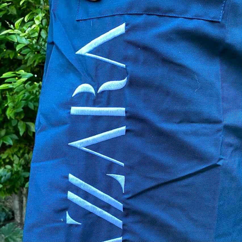 Na prednej strane vyšívané logo Bazzara a vpravo dole vyšitý nápis BAZZARA.
