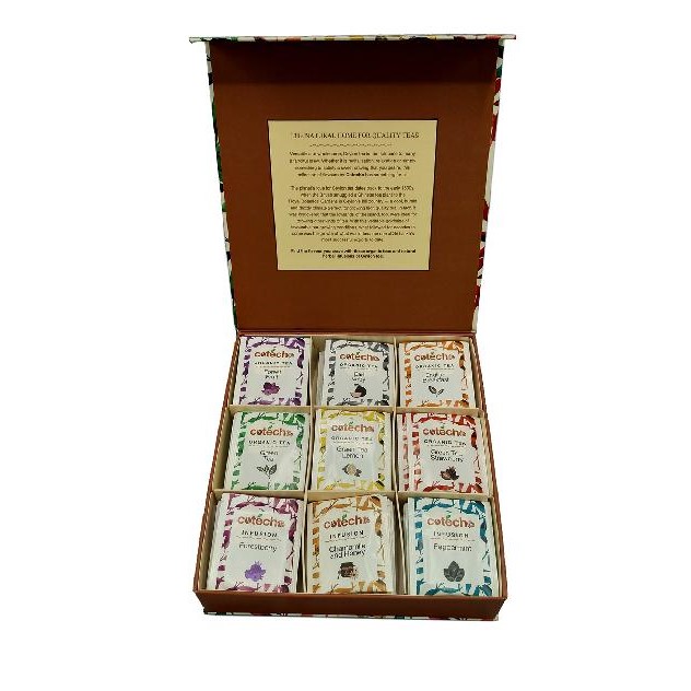 Porciovaný čaj deviatich druhov v elegantnej kazete . Kazeta sa uzatvara na magnet.