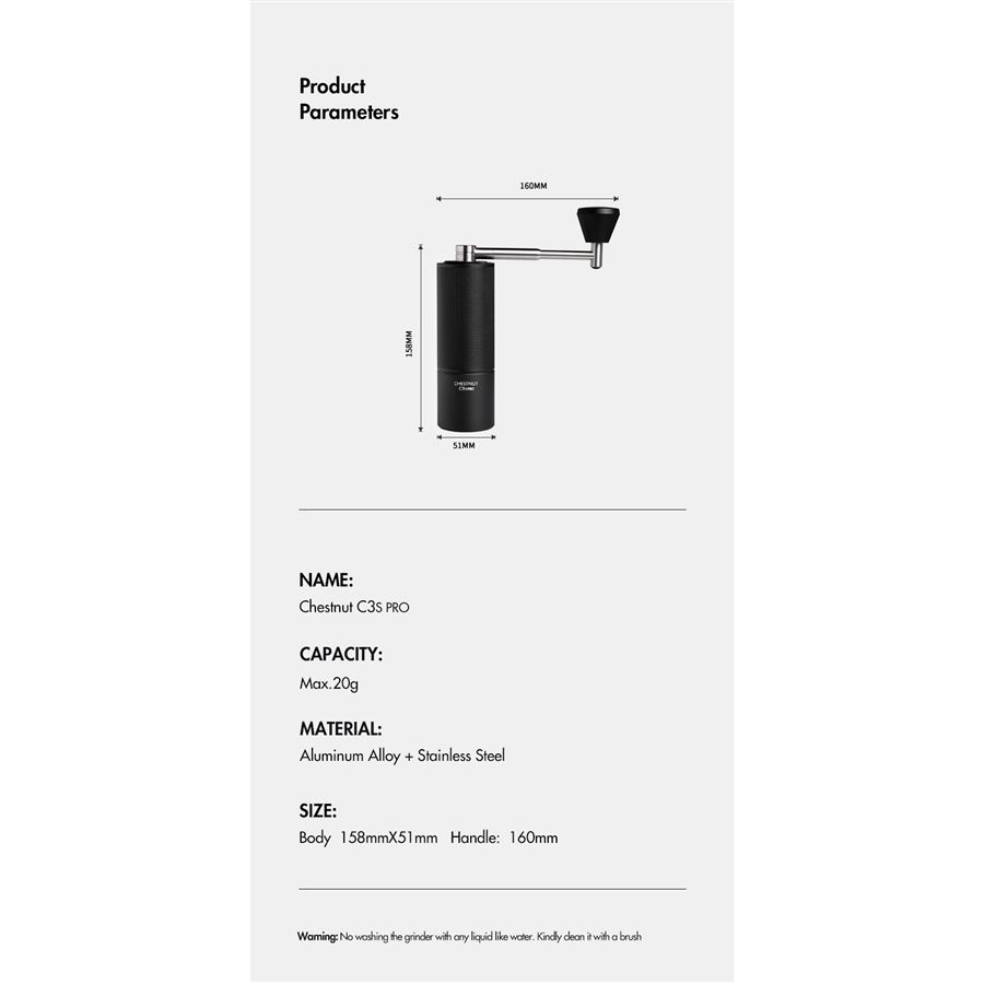 Úvod » Mlynčeky ručné » TIMEMORE Chestnut C3 S PRO skladací mlynček na kávu čierny