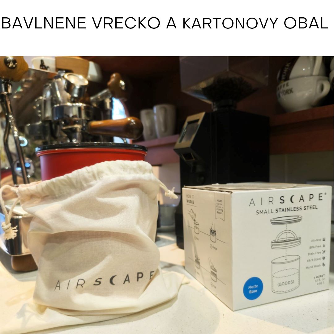 Nerezová vákuová dóza AIRSCAPE je vhodná aj ako darček, ktorý poteší každého baristu, ktorý si potrpí na kvalitné uskladnenie kávových zŕn. Je zabalená v kartónovej krabici (viď foto) a inak každé balenie obsahuje aj bavlnené vrecúško s logom AIRSCAPE, ktoré chráni cool obal pred poškodením pre prípad prepravy, alebo keď proste chcete jednoducho takúto ochranu mať na nádobe .
