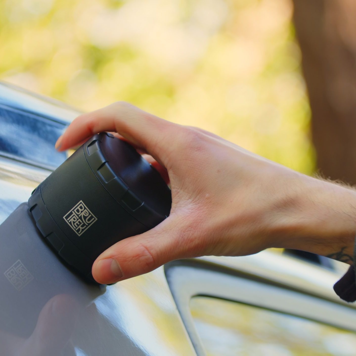 Nádobka ma naviac integrovaný magnet , aby sa dala uchytiť v pohodičke pri robení kávičky napriklad na kapotu auta.